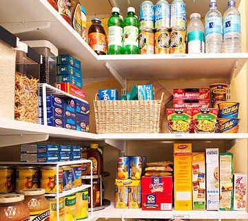 Den här bilden illustrerar detta på ett bra sätt tycker jag. Man har både organiserat efter kategori (pasta, drycker), förpackning (plåtburkar) och måltider (snacks).